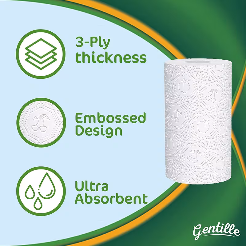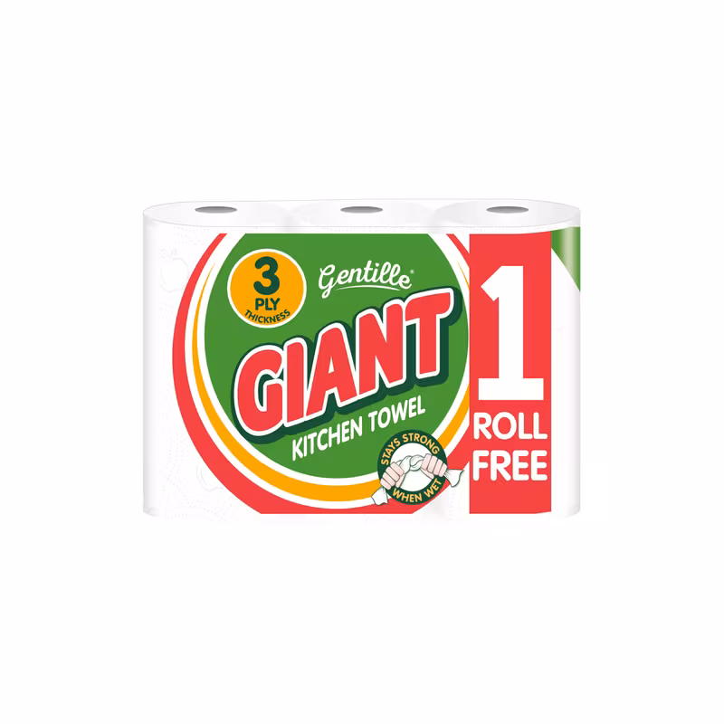 Gentle Giant 3 Pack, 36 Rolls of Super Strength Kitchen Towel- Great value product – Buy with confidence direct from the manufacturer Each roll is 16 meters of 3-ply thickness white virgin towel, with a weight of 233 grams Roll height is 225mm Core diameter is 50mm Roll diameter is 140mm Sheet size 225mm x 230mm Number of sheets 66 – – Gentle Giant 3 Pack Kitchen Rolls are made from thick, embossed white paper. Thanks to their high absorbency, each sheet goes a long way, reducing the number of towels needed. STRONG, ABSORBENT, AND DURABLE – The unique quilted fruit pattern is designed to trap and lift all kinds of mess. From small kitchen spills to tough bathroom stains, we’ve got you covered. RESPONSIBLY SOURCED – we’re on a mission to produce premium quality kitchen roll in an ethical way. All of our paper is sourced from viable Western European trees and produced in a certified paper mill AFFORDABLE VALUE- A clean home or office shouldn’t break the bank. This bulk pack contains 36 rolls, with each roll made up of 66 sheets. Gentle Giant is good for your home and your wallet – Gentle Giant is proudly manufactured from a factory in Oldham, Manchester. Every purchase helps to support the local economy.