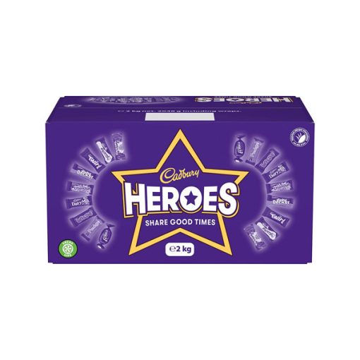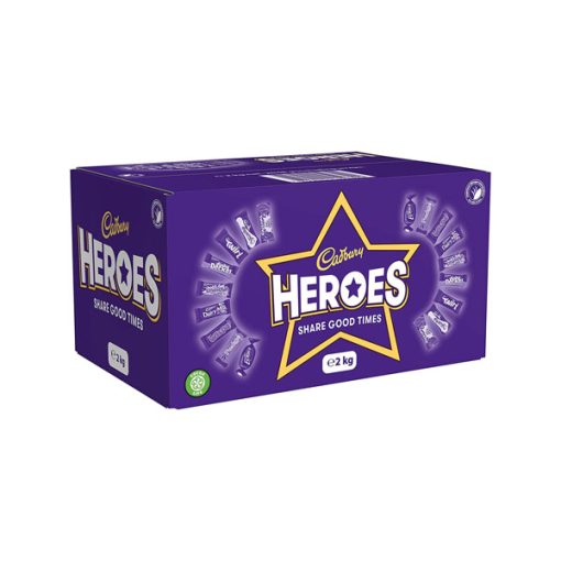 Cadbury Heroes Bulk Sharing Box This 2 kg Cadbury Heroes Chocolate Box is an excellent gift for Christmas, birthdays or any other occasion. Enjoy this assortment of delicious Cadbury chocolates and toffees, made with cocoa beans that are sourced through the Cocoa Life Sustainability Program.