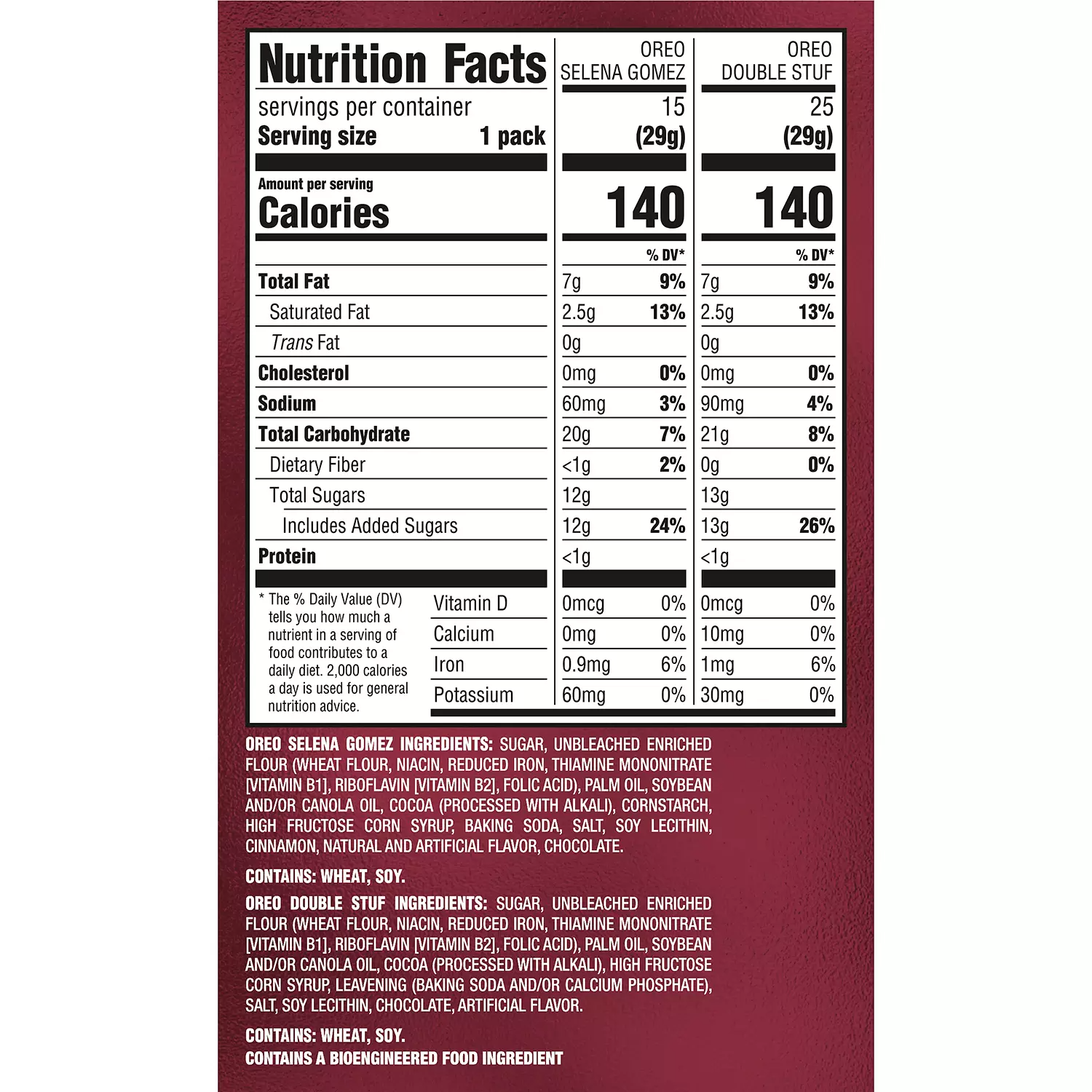 Try Selena’s Signature OREO Cookies in the Selena Gomez & OREO Double Stuf Sandwich Cookies Variety Pack. which combines two delicious kinds of OREO Cookies for a magnificent cookie mashup! Selena Gomez OREO Cookies are flavorful. horchata-inspired sweet snacks featuring a layer of Chocolate and Cinnamon Flavor Creme atop another layer of Sweetened Condensed Milk Flavor Creme with Cinnamon Sugar Inclusions. sandwiched between two OREO Chocolate Cinnamon Flavored wafer cookies embossed with one of six unique designs inspired by the superstar. This cookie variety pack also contains 25 snack packs of OREO Double Stuf Chocolate Sandwich Cookies. stuffed with delicious OREO creme filling!