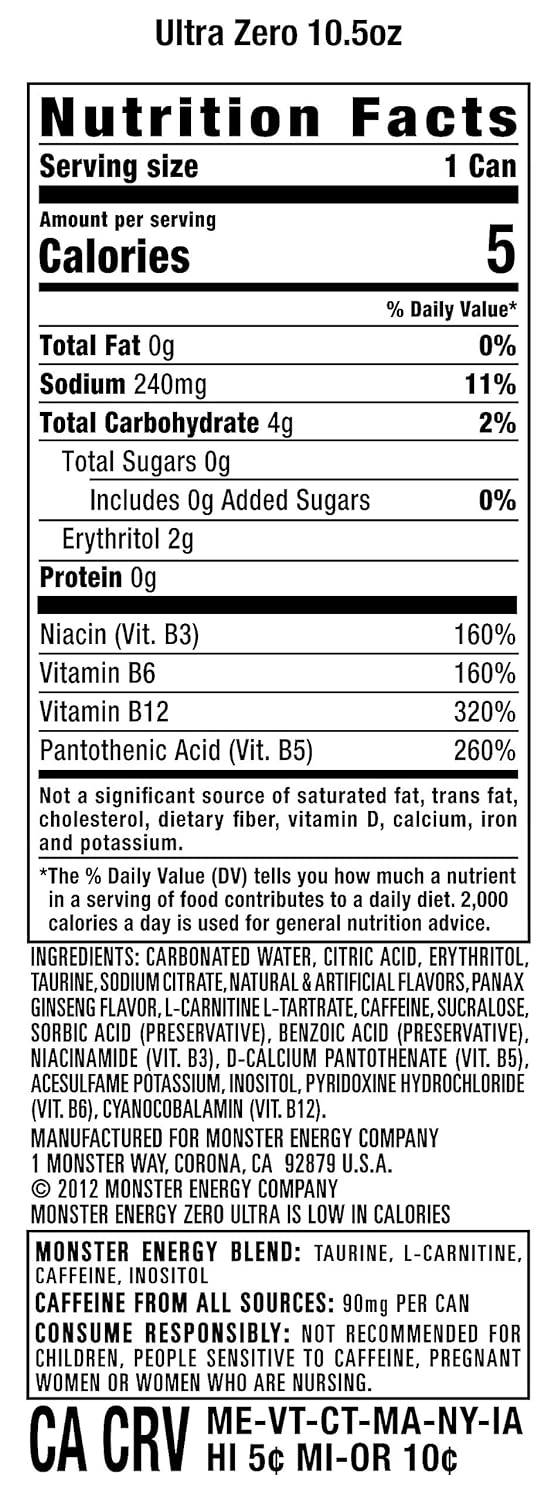 Monster Ultra Violet has 10 calories and zero sugar but with all the flavor you’re accustomed to and packed with our sugar-free Monster Energy blend.