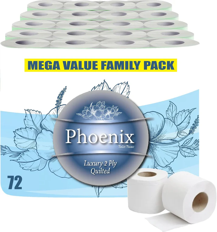 Get unbeatable value with this 72-roll bulk pack of Phoenix Quilted 2-Ply Soft White Toilet Rolls. Designed for families. offices. and businesses. these rolls combine softness. strength. and absorbency. Each roll features gently quilted texture that’s kind to skin and strong enough for everyday use. Fragrance-free and hygienically packed. they’re perfect fit for all standard holders—making them the ideal choice for large households or high-traffic washrooms.